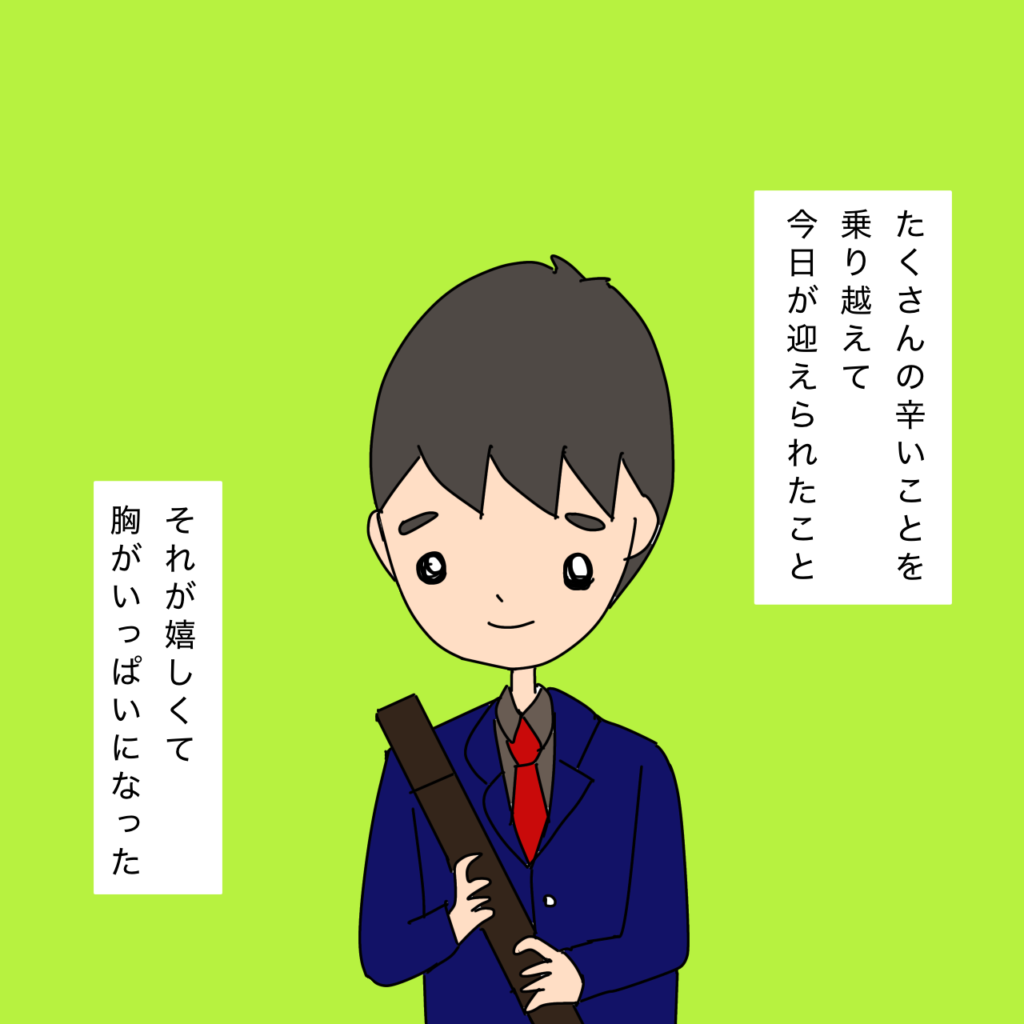双極症の息子48双極症 2026.01.03ついに高校卒業の日を迎えました今までのことを考えると涙がこぼれました😭そして、通信制高校にこんなに通っていたなんてみんなそれぞれ色々な物語があってそれを乗り越えてきたんだろうなと思うとまた感慨深いものがありました😭